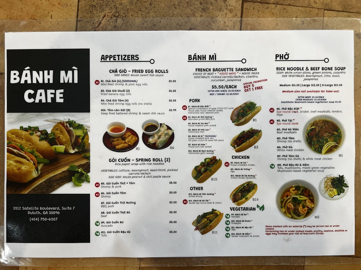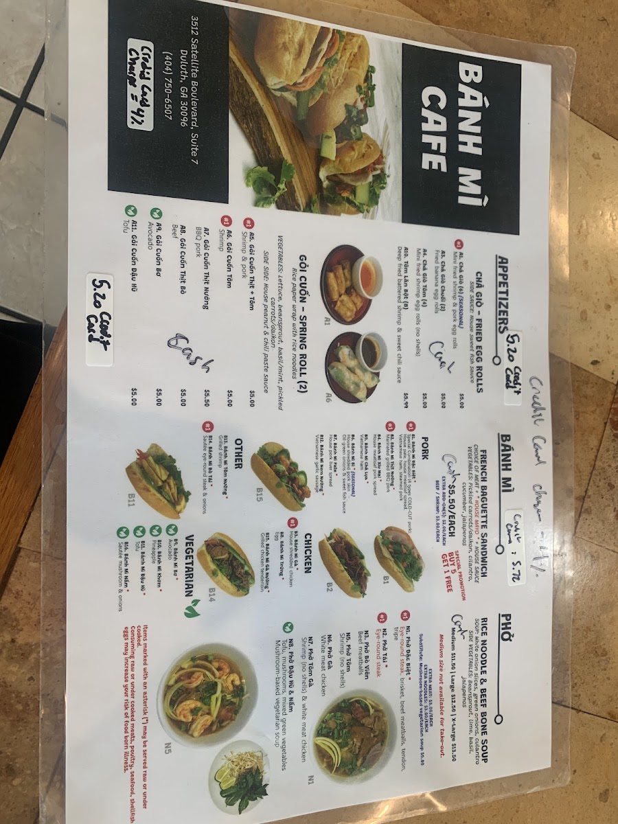 Banh Mi Café Menu